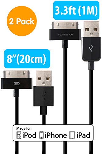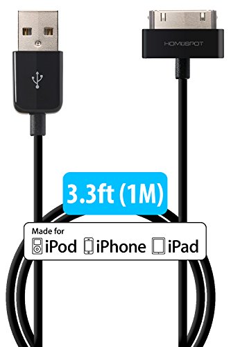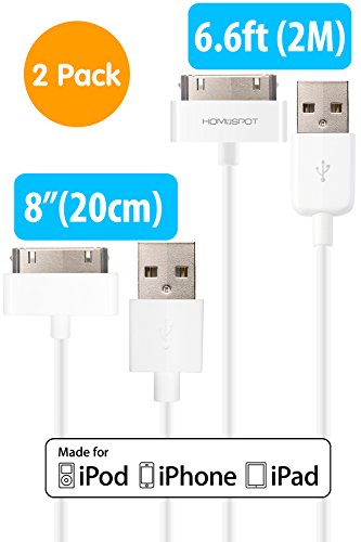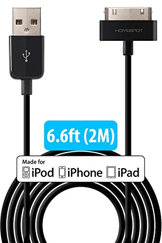 HomeSpot 6.6 feet Apple MFi Certified 30P Charging Cables Charge and sync the latest iPhone, iPad or iPod products with the HomeSpot' s Apple MFi Certified 30-Pin to USB 2.0 Cable. This item is fully compatible with iPhone 4S / 4. Connect with convenience to all your 30 Pin adapter gear. It's 6.6 feet long! This extra long length USB cable is compatible with your iPhone 4, smartphone or other 30-Pin compatible devices to connect your laptop or charger in your car without the trouble of having the cable tied up or trip on by accident. This is a newer & stronger round style cable so it easily folds into any small space like purse or shirt pocket. The 6.6 ft/2 m length lets you conveniently reach a USB port of most computers without all the extra cable length getting in your way. Light-weight and easily stored, you can carry this cable wherever you go. Charge and Data Sync Use it to connect to your computer for data sync, or charge up your device on USB charger.Feature