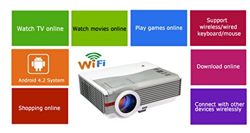 EUG X99+(A) Android4.2 Wireless HD LED home theater projector HD HDMI TV for use with SKY / PS3 / PS4 / XBOX360 / BLU RAY / WII / LAPTOP. Support DLNA, Miracast and Airplay protocol. Wirelessly connect iOS devices, Android Smartphone, Tablet PC and PC/Laptop