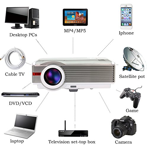 HDMI/VGA/AV/TV/USB multimedia interface, Can connect your devices like DVD player, laptop PC, PS4, XBOX, TV set-top box, gaming console etc. Enjoying watching movie and football match at home ,also applying to courtyard or outside.Halloween,party, Christmas gift for mother and children