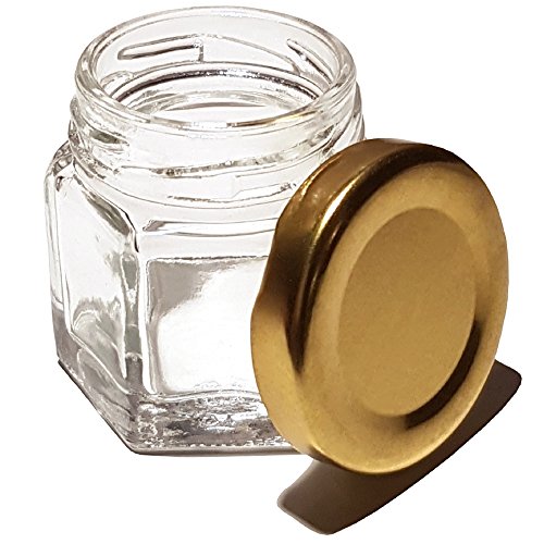 Hexagon Glass Jars 1.5 Oz - Case of 24 - Mini Glass Jars with Gold Lids by Nestox