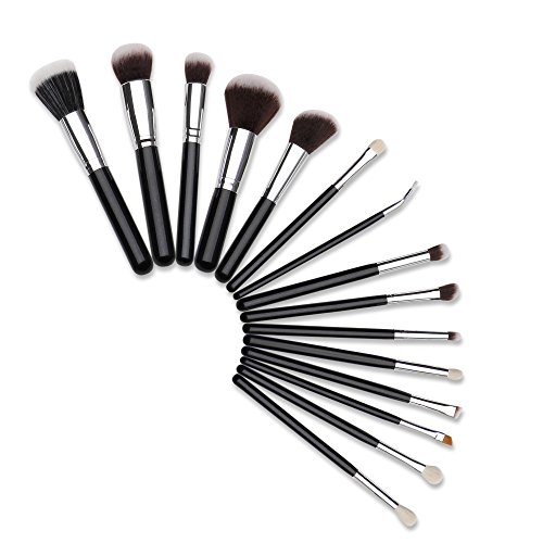 Voluex Makeup Brushes 15 Pieces Premium Synthetic Foundation Face Powder Blush Eyeshadow Brushes Makeup Brush Set with Brush Cleaner