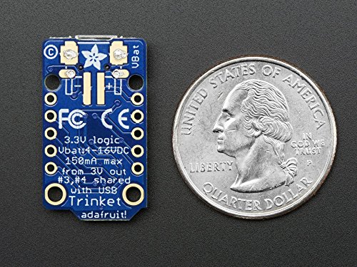Trinket may be small, but do not be fooled by its size! It's a tiny microcontroller board, built around the Atmel ATtiny85, a little chip with a lot of power. We wanted to design a microcontroller board that was small enough to fit into any project, and low cost enough to use without hesitation. Perfect for when you don't want to give up your expensive dev-board and you aren't willing to take apart the project you worked so hard to design. It's our lowest-cost arduino-IDE programmable board!The Attiny85 is a fun processor because despite being so small, it has 8K of flash, and 5 I/O pins, including analog inputs and PWM 'analog' outputs. We designed a USB bootloader so you can plug it into any computer and reprogram it over a USB port just like an Arduino. In fact we even made some simple modifications to the Arduino IDE so that it works like a mini-Arduino board. You can't stack a big shield on it but for many small & simple projects the Trinket will be your go-to platform.