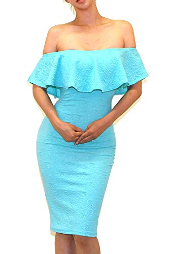Off shoulder with ruffled detail overlying. pair it with a sky-high pump would be much perfect.
