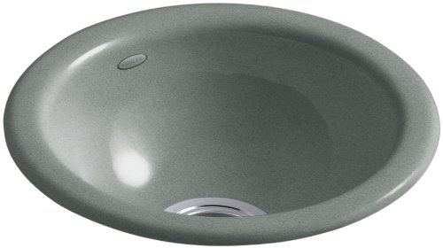 KOHLER K-6588-FT Iron/Tones Self-Rimming (14-1/2" Diameter) or Undercounter (11-1/2" Diameter) Kitchen Sink, Basalt