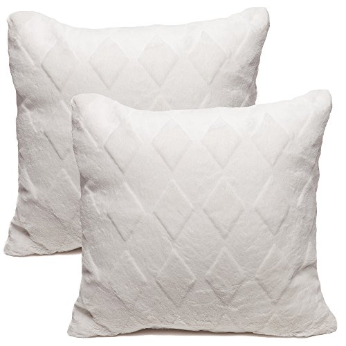 Chanasya Super Soft Elegant Faux Fur Diamond Shape Embossed Cozy Decorative White Throw Pillow Cover Pillow Sham- Solid White 2-Pack Throw Pillowcase 18x18 Inches