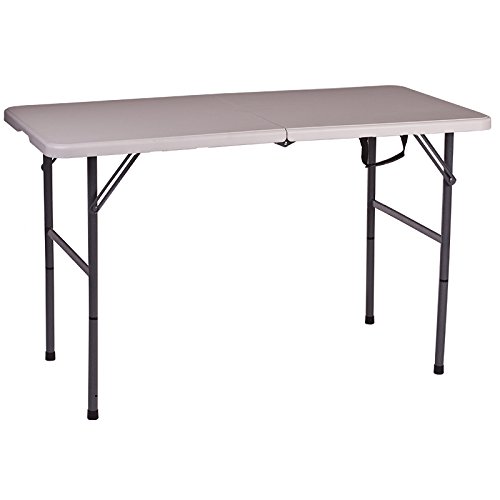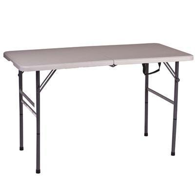 Studio : Stansport (Outdoors) Publisher : Stansport (Outdoors) Binding : Sports Product Description The Stansport Folding 48" X 24" X 29" Camp Table features heavy duty HDPE construction and table leg extensions so that it can be used at two height levels. Legs fold into base and table folds in half for portability and storage. Attached carry handle makes it easy to set-up and take down. Great for camping, tailgating or backyard barbecues. 0