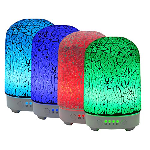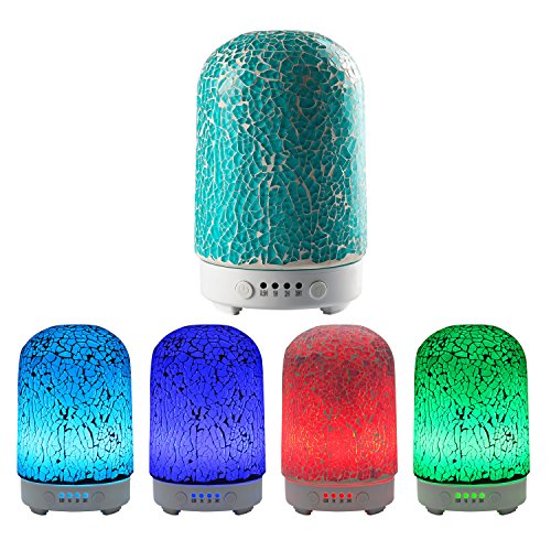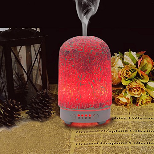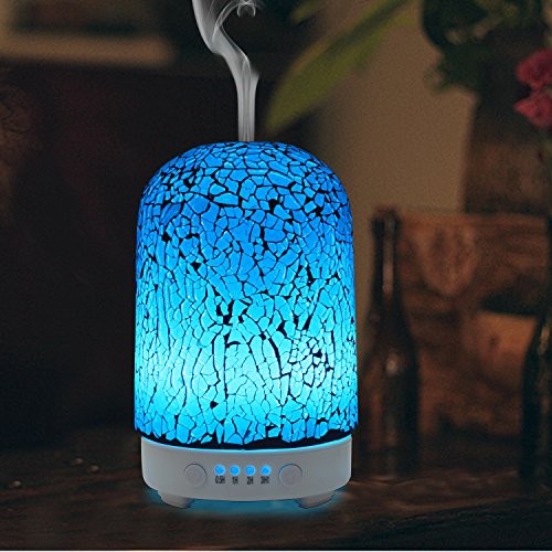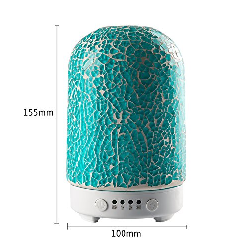 COOSA 100ml Aroma Diffusor Luftbefeuchter mit kuhlem Nebel, Mosaik Glas Muster Flasche, Atherisches Ol, LED buntes Licht mit 4 Zeiteinstellung Fur Haus, Buro, Schlafzimmer