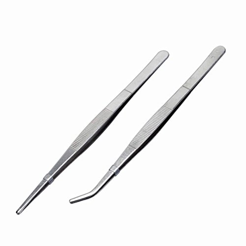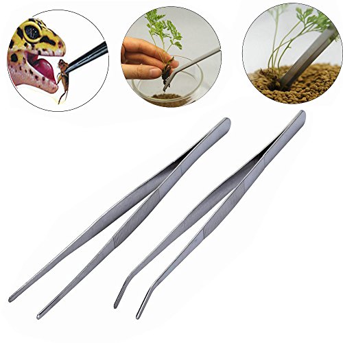 BinaryABC Stainless Steel Straight and Curved Nippers Tweezers Feeding Tongs for Reptile Snakes Lizards Spider(Silver) 2pcs