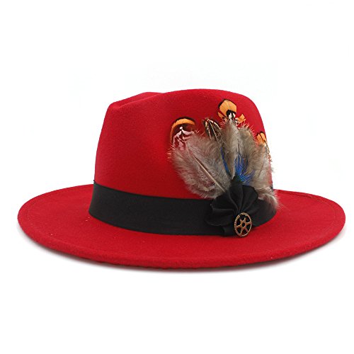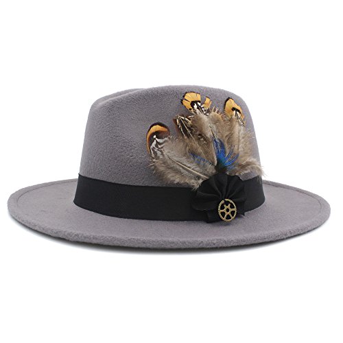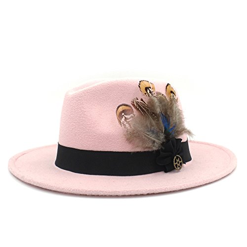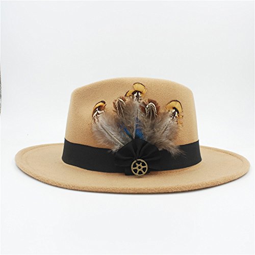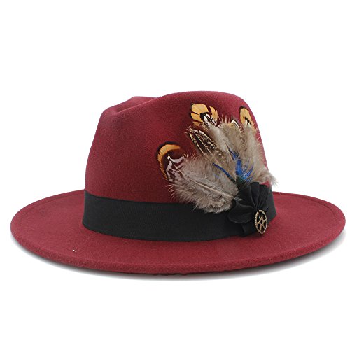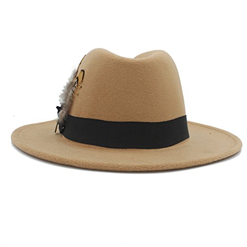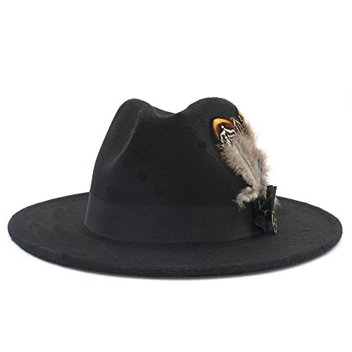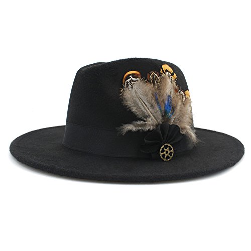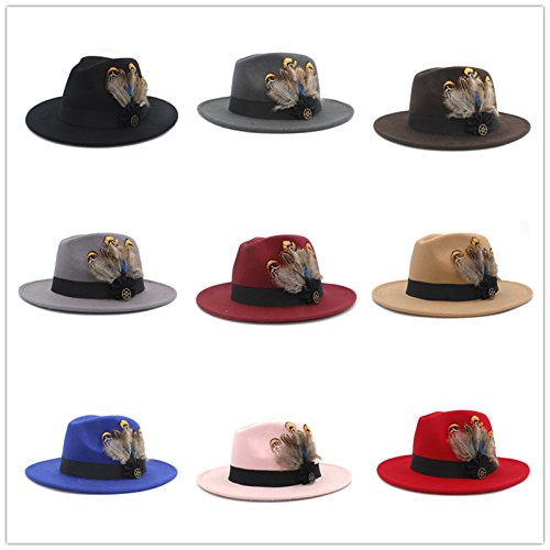 | (Battle Men)/Accessories/Hats/DIRECT FROM USA/Battle Men Women's Wool Wide Brim Fedora Panama Hat Decor with Black Belt Feather Bowtie Looking |