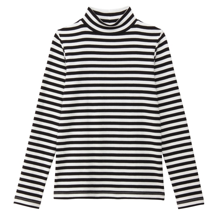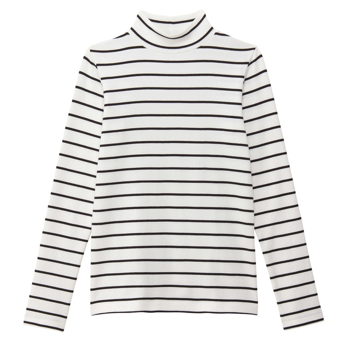 Muji 오거닉 코튼 스트레치 보더 하이네구T셔츠 부인XS흰색×검정(중간 굵기)편의점 수취가