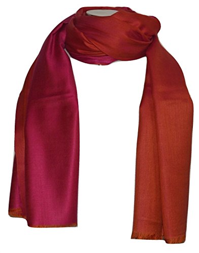 Binding : Apparel Product Description ITEM DESCRIPTION Handcrafted by artisans from Kashmir with Premium Quality Silk Modal Wool fabric. This Scarf/Shawl is Reversible, super soft, warm, in beautiful Two tone Color. Very light weight and apt for any occasion. Never out of fashion. Dimensions: 80 Inches * 29 inches (Approximate) Maintenance: Dry Clean only. 0