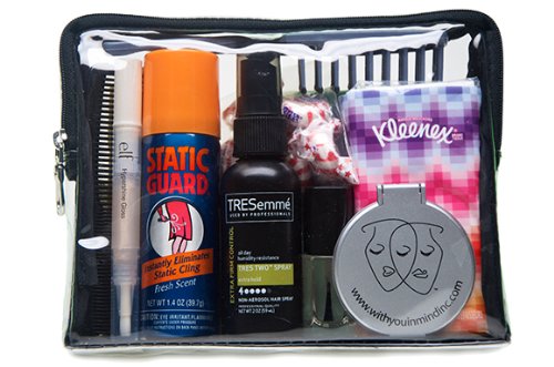 -. Brand : With You in Mind, inc. -. Feature : PLEASE CONTACT US FOR SHIPPING RATES ON QUANTITY PURCHASES / see "Product Description" for full contents -has over 26 different items / "Clear" bag is TSA approved for travel / Ideal for a Wedding Party of one - the Bride / Perfect for Mother of the Bride or Groom -. ProductGroup : Apparel -. ProductTypeName : APPAREL -. Size : 0 -. Title : With You in Mind, inc. - Wedding Day Emergency Kit /Mini