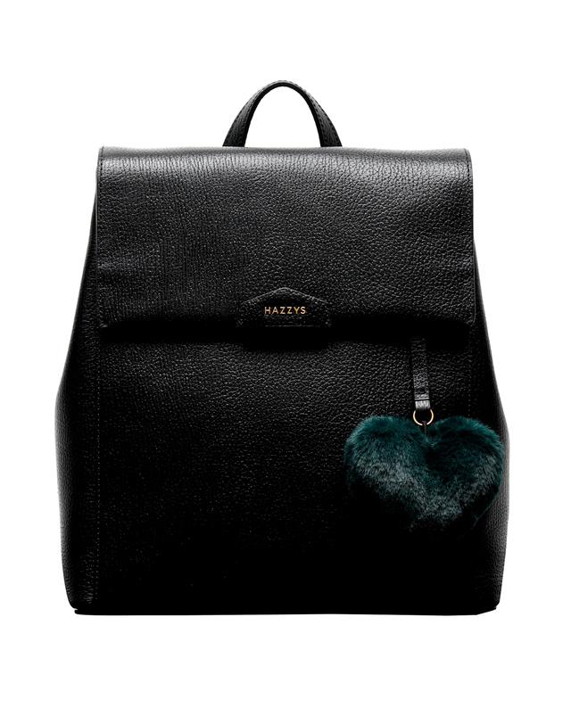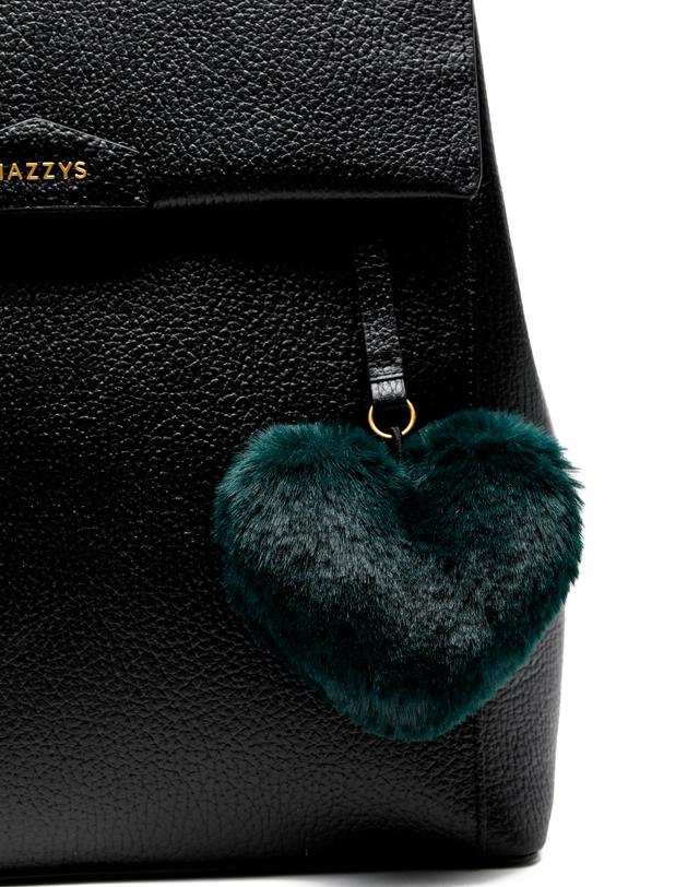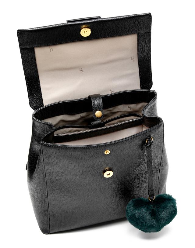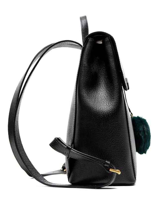 심플한 블랙 가죽 바탕에 부드러운 퍼 장식으로 포인트를 준 백팩입니다.