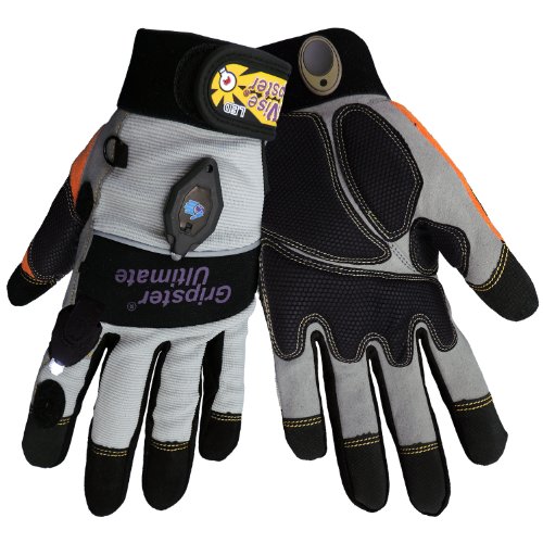 Studio : Global Glove Publisher : Global Glove Binding : Misc. Product Description Global Glove Ulimate Gripster mechanics glove. The Ultimate Gripster incorporates Liquicell technology in high stress areas which is proven to reduce discomfort and blistering. Three position LED light, carabiner hook, Soft, flexible and durable gray Clarino base material reinforced PVC palm, Exclusive neoprene padding for added knuckle protection and reflective stripping added for viability. A thumb pull tab for ease of donning. Special high grip material is added on the finger and thumb tips. A unique Lycra panels between fingers for added comfort and mobility, and Kevlar sewn. Size: medium. 0