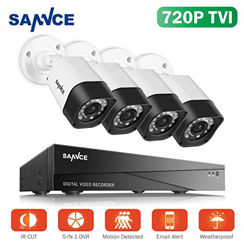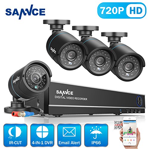 -. Title : SANNCE 8CH 1080N AHD DVR Security Camera System and (4) 720P Night Vision Surveillance Cameras, IP66 Weatherproof , P2P Technology/E-Cloud Service, QR Code Scan Remote Access, No HDD