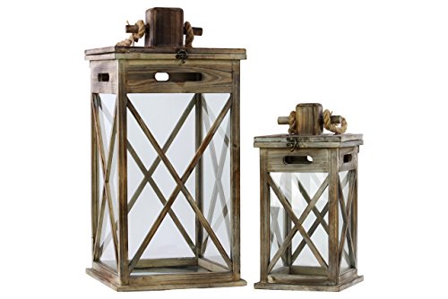 -. Title : Urban Trends Wooden Lanterns with Rope Hanger, Natural Wood Finish, Set of 2