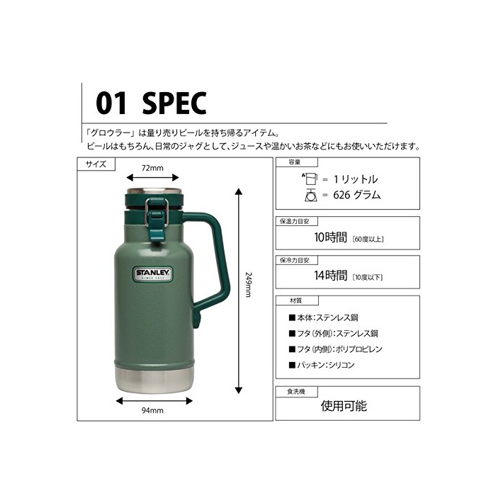 원본상품명: STANLEY(スタンレ?) ?空グロウラ? 1L グリ?ン (日本正規品) 02111-007