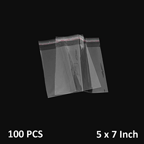 The Elixir Packaging 100 Pcs 5x7 Crystal Clear Resealable Reclosable Cello / Cellophane Bags