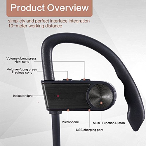 BHD Headphones Bluetooth Earphones Wireless Sweatproof Waterproof Stereo with Mic Bass Noise Cancelling Bluetooth for Sports running Gym Yoga for iPhone 7 Samsung Galaxy Andorid iOS Device