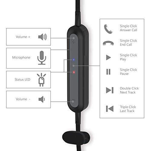 Kontrolleinheit mit integriertem Mikrofon fur die einfache Steuerung der Telefon- und Musikfunktionen | Unverknullbares Flachkabel | Bluetooth 4.0 / Class II