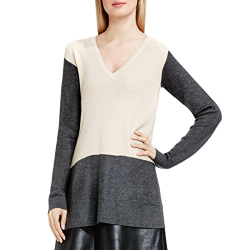 Vince Camuto Women's Long Sleeve V-Neck Waffle-Stitch Colorblock Sweater