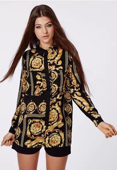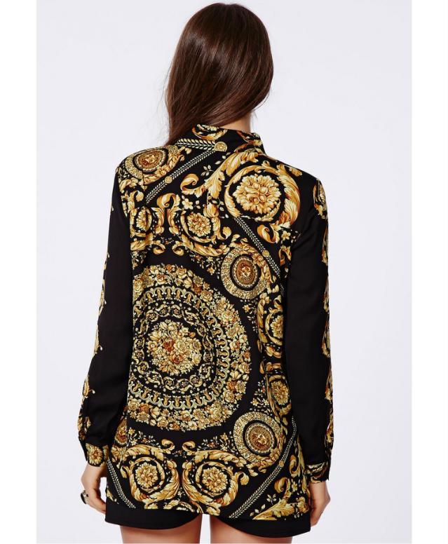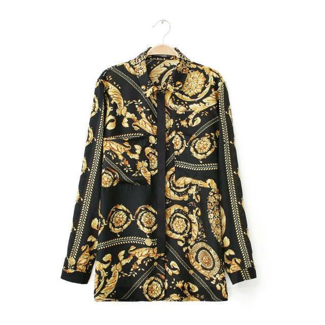 Women Blouse Spring New Product Fashion Turn down Collar Vintage Printed Fashion Long Sleeve Casual Shirt in Stock