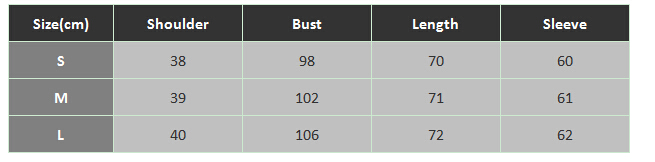 Size: There are 3 sizes (S, M, L) available for the listing. (All measurements are in cm and please note 1cm=0.3 inch)