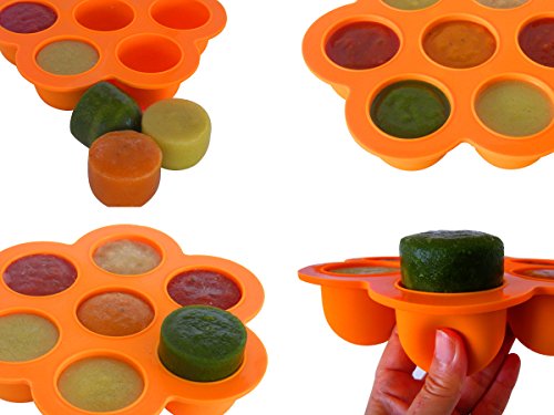 - Feature : TIME-SAVING AND CONVENIENT - You don't go to the store each time you need a jar of baby food, so why make one home-made meal at a time? Make a weeks' worth of dinners and grab back precious time to spend with your family. What could be easier than taking a ready-made meal from the freezer to reheat and serve to your baby or toddler? / NO MORE MESS, NO MORE SPILLS - Our wide mouthed pods allow for easy filling and are non-stick so portions pop out smoothly with just a gentle squeeze. Premium grade, eco-friendly silicone and clip-on lid means they won't bend and spill their contents when you're carrying them to the freezer. And they're safe to use in your microwave, oven, freezer and dishwasher too. / HEALTHY, NUTRITIOUS FOOD IN THE PERFECT PORTION SIZE - You can't be too careful with your little ones, which is why making fresh baby food makes sense, because you get to choose exactly what they eat. Fill each 2.5 oz. compartment with nothing but wholesome goodness, without all those artificial additives and man-made chemicals you'll find in store-bought products. / VERSATILE AND GREAT AS A GIFT - Be creative! You can use these containers for storing breast milk, leftover wine, soups, sauces, juice, frozen yogurt, smoothies, for preserving fresh herbs, as ice pop molds, for freezing large ice cubes, and even for baking mini-muffins / cupcakes. (Just write what's inside on the lid with a ballpoint pen and wash label off later.) And they make great baby shower gifts too! / BPA FREE, 100% BABY-SAFE AND COMES WITH OUR LIFE-TIME GUARANTEE - It's great to have peace of mind knowing this product is made from FDA-approved food-grade silicone and is BPA-free, phthalate-free, non-toxic, bacteria and stain-resistant. As a mom you already have enough to think about without being worried about your baby's safety and health, and with our life-time money-back guarantee, we've got you covered!