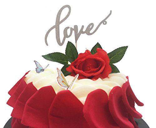 Love Cake Toppers, KOOTIPS Wedding Love Wedding Cake Topper Party Valentine's Day Wedding AnniversaryCake Decoration (Love-silver)