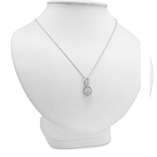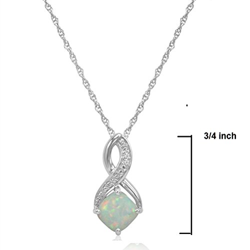 Created opal with diamond accents set in .925 sterling silver on an 18 inch sterling silver chain