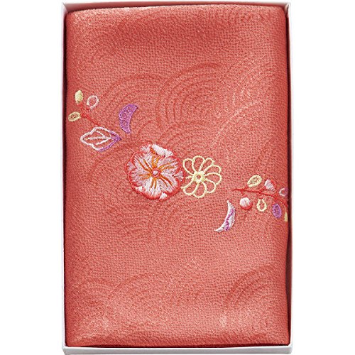 -. Title : 大興産業 中巾ふろしき 正絹ちりめん綸子刺繍入り 青海波 辻ケ花 朱 468-2