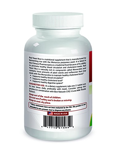 -. Feature : Red Yeast Rice is known to promote HMG-CoA reductase inhibition action which may help to promote healthy cholesterol levels / Supports healthy cholesterol level, blood circulation, and digestive health / Promotes Healthy Cardiovascular System Supports Healthy Blood Circulation Supports overall Health and Well Being / No Artificial Color, Flavor or Sweetener, No Preservatives, No Sugar, No Starch, No Corn, No Soy, No Egg, No Lactose, No Gluten, No Wheat, No Yeast, No Fish, No Sodium. / TOP QUALITY GMP CERTIFIED PRODUCTS - All Best Naturals products are manufactured in accordance with Good Manufacturing Practices (GMP), among the highest standards in the world -- Proudly Made in USA -- Purity & Potency Guaranteed
