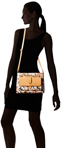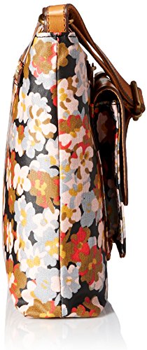 Floral-print top-zip bag featuring front pocket with contrast flap and belt-through strap accent