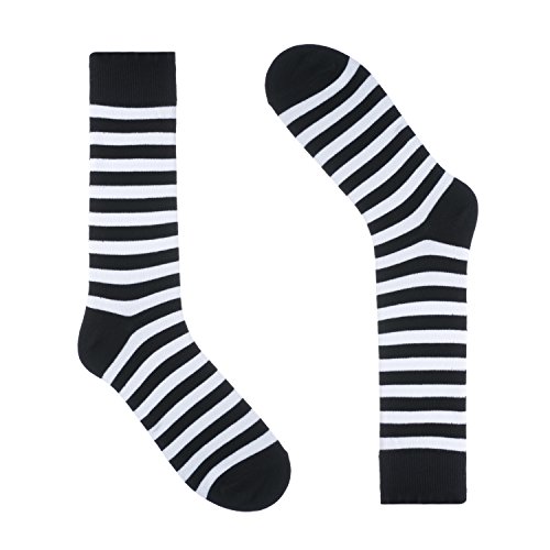 -. Binding : Apparel -. Brand : Ivory + Mason -. ClothingSize : Sock Size 10-13 / Shoe Size 8-13 -. Color : Black and White Stripes -. Department : mens -. EAN : 0045926396707 -. Feature : UNIQUE DESIGN - Ivory + Mason provides one of the most unique Men's striped socks on the market. Our mission is to create the world's most comofortable pair of socks. Perfect for all year round and great gift for any occasion. These classic men dress socks pair perfectly with a suit and dress shoes or even for a casual evening out in jeans and sneakers. Striped socks are both trendy and timeless fashion pieces. / GUARANTEED COMFORT - Our dress socks are made with a cotton blend including polyester and spandex. Cotton socks are beneficial because they absorb moisture from your feet and it evaporates from the socks. We gaurantee your feet will feel comfortable while wearing your dress shoes. The stripe socks contain 85% Cotton, 10% Polyester and 5% Spandex. / VERSATILE SIZING - Sock size 10-13 will fit most men's shoes. This usually translates to a man's U.S. shoe size 7-13. (European 42-46, UK 7-12). Our styles can also be worn by women. This usually translates to a woman's U.S. shoe size 9-15. / CUSTOM PACKAGING - All of our socks are nicely packaged so you can also gift our products for any special occasion. Our striped socks makes the best Father's day gift, Christmas gift and Birthday gift for men and women. Our striped socks styles go past your ankle. These colorful designed striped socks are the best everyday dress socks for men. They come in a eco-friendly kraft packaging that's been hand stamped locally in Los Angeles, CA. / DESIGNED IN USA - Our socks patterns are designed with love in Los Angeles, CA. Our creative director hand designs each pair to provide unique designs and ideal fit. Ivory + Mason has been featured in Oprah Magazine, Allure, OK! Magazine, Refinery29, E News, The View and many more publications and television outlets. -. IsAdultProduct : 0 -. MPN : 43190-269810 -. PartNumber : 43190-269810 -. ProductGroup : Apparel -. ProductTypeName : TOYS_AND_GAMES -. Size : Sock Size 10-13 / Shoe Size 8-13 -. Title : Ivory + Mason Striped Socks for Men - Dress Sock - Colorful - Black and White Color - Cotton - Size 8-13 (One Pair) -. UPC : 045926396707
