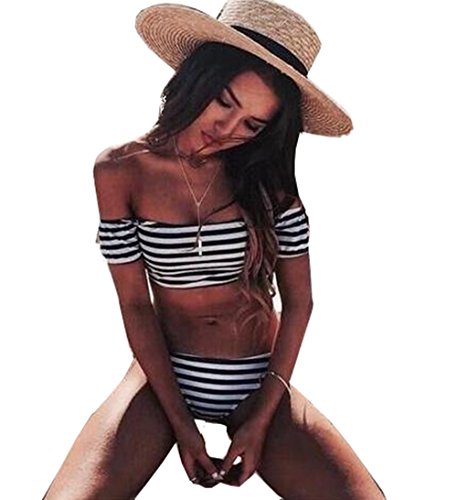 -. Title : lavy 水着 ビキニ2点セット ストライプ ボーダー セレブ レディース フリル シフォン オフショル バンドゥ 大人 セクシー