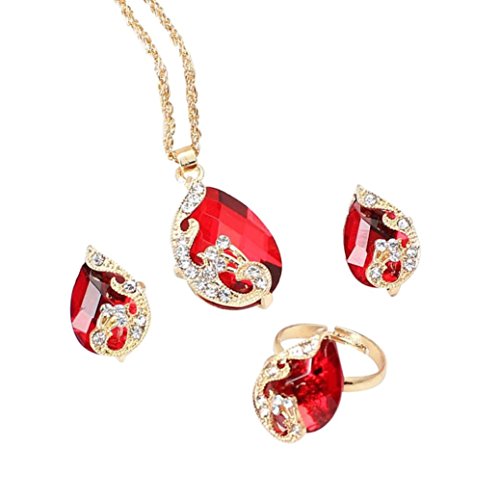 -. Feature : Item Type: Jewelry Sets / Material: alloy crystal / Occasion: Party Metals Type: Gold Plated / Size:Chain length: 45 cm;Earring: 1.5 * 2.1cm;Ring: 1.5 * 2.1CM;Pendant: 2 * 3.7cm / Shape\pattern: Plant