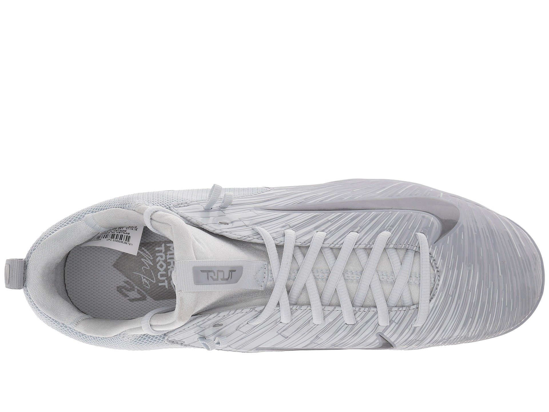 | Product Information SKU: #8774743Deliver nothing less than excellence each time you step onto the diamond in the Nike? Trout 3 Pro baseball cleat. Designed by outfielder Mike Trout.Durable, supportive synthetic leather uppers. Breathable mesh tongue. Lace-up closure. Heel pull loop.Padded tongue and collar. Breathable fabric lining offers a great in-shoe feel.Thin foam footbed. Phylon foam midsole supplies lightweight cushioning. TPU cleat plate with nine blades for aggressive traction. Imported. Product measurements were taken using size 11.5, width D - Medium. Please note that measurements may vary by size.Weight of footwear is based on a single item, not a pair.Measurements: Weight: 14 oz |