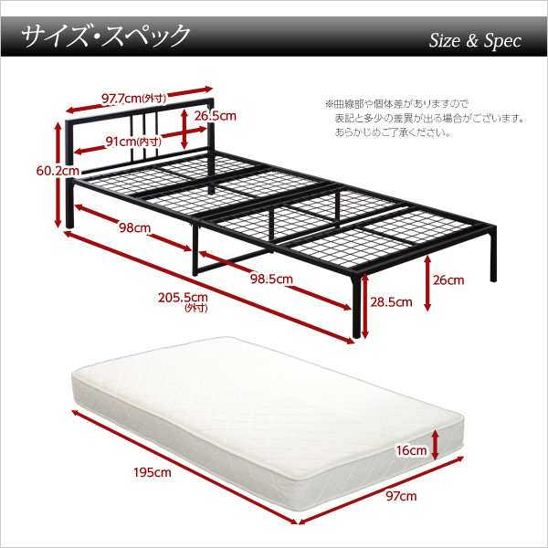 (ベッドフレーム) (約)幅97.7×長さ205.5×高さ60.2cm