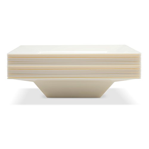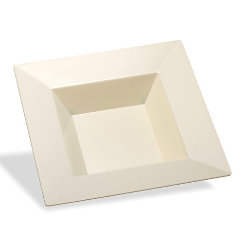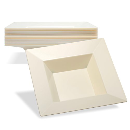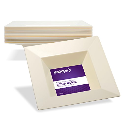 EDGE PLASTIC PARTY DISPOSABLE SOUP BOWLS | 14 Ounce Ivory Hard Square Wedding Bowls, 40 Ct | Elegant & Fancy Heavy Duty Hard Party Supplies Plates for all Holidays & Occasions