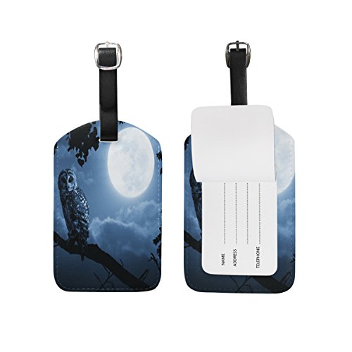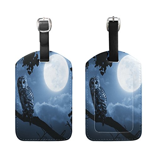 (ALAZA)/Accessories/Luggage, Bags Travel/DIRECT FROM USA/Cooper girl Owl Under Moon Luggage Tag Travel ID Label Leather for Baggage Suitcase 1 Piece