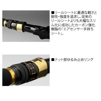 릴 씨트에 최적인 가벼움과 강성 강도를 추구하고, 종래의 릴 씨트보다(부터)도 대폭적인 슬림화로 성공한 카본 강화 수지의「에어 센서 소지 씨트」.
