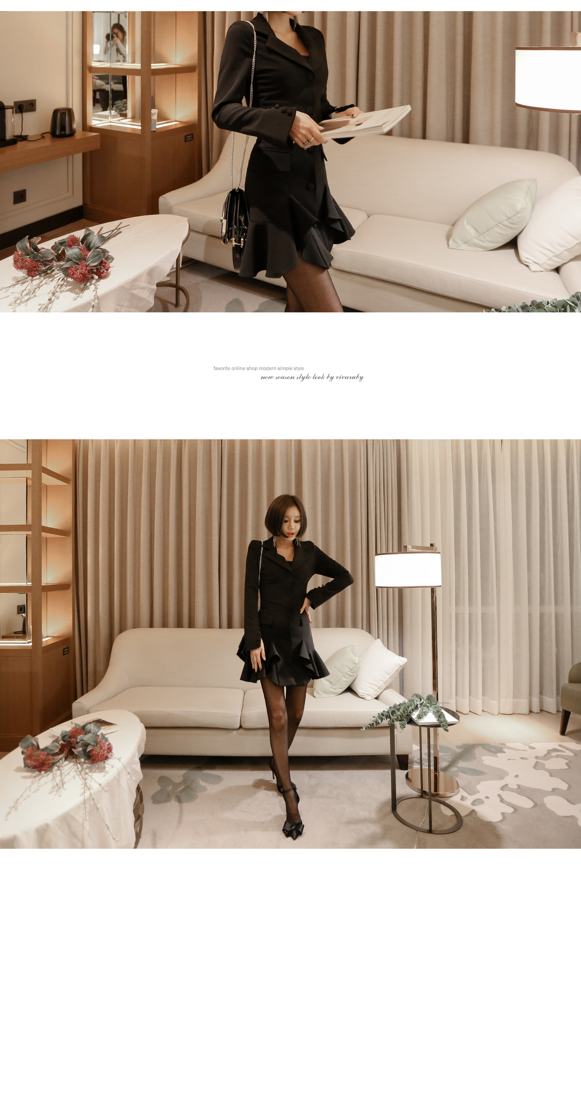 下のだんにラブリーしたフリルがポイントをつけるワンピースです