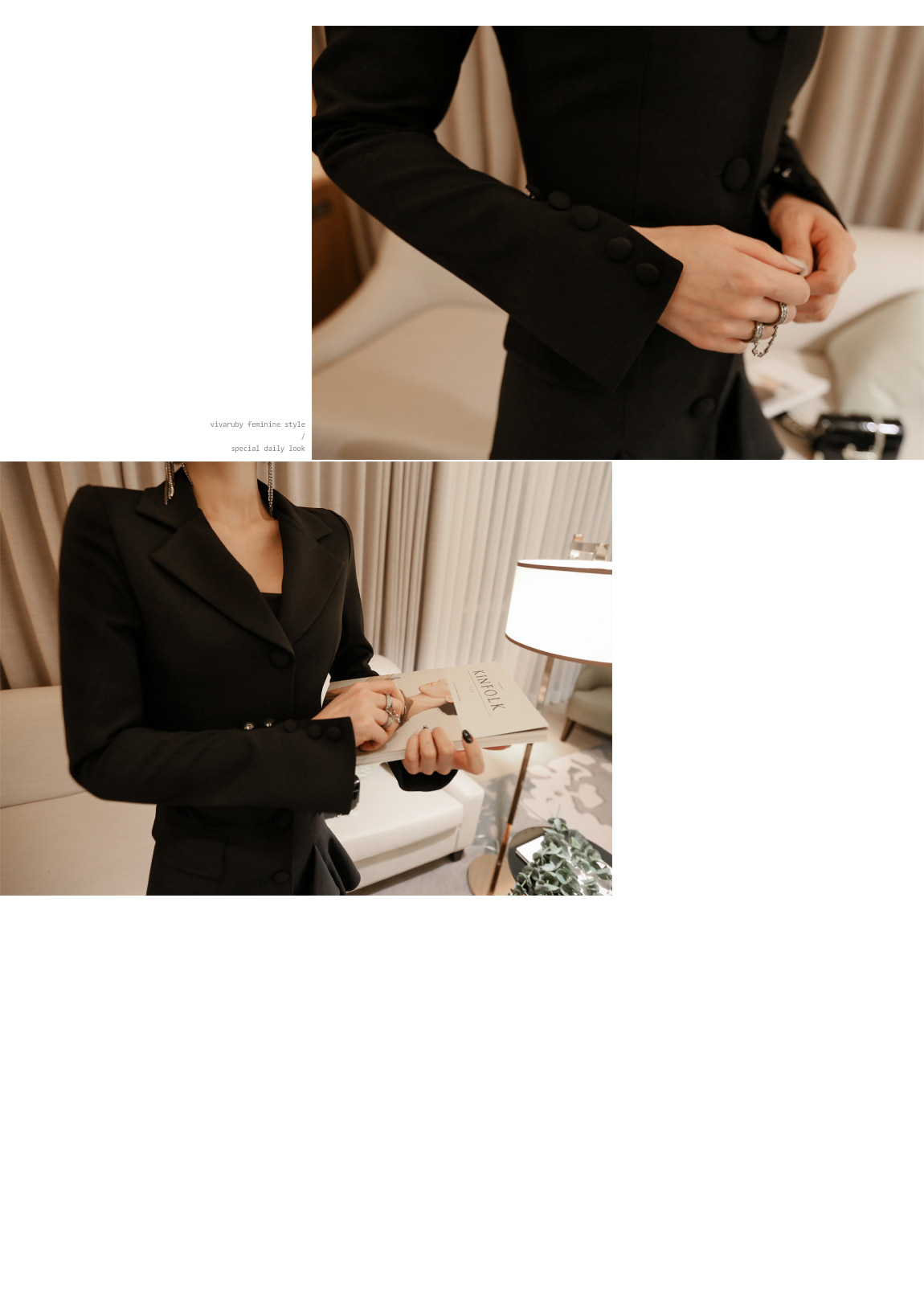 袖ラインはフェイクボタンと開けたことがミックスされて