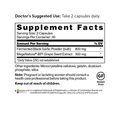 GRAPES AND GARLIC-NATURE'S HEART HEALTHY DYNAMIC DUO. Award winning, clinically studied nutrient, MegaNatural-BP Grape Seed Extract, and antioxidant friendly, Fermented Black Garlic, promotes heathy blood pressure levels already in the normal range and overall cardiovascular health.