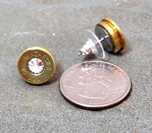 -. Title : Winchester 45 Colt Bullet Earrings Swarovski Elements Clear Diamond Rivoli Stainless Steel Posts Studs