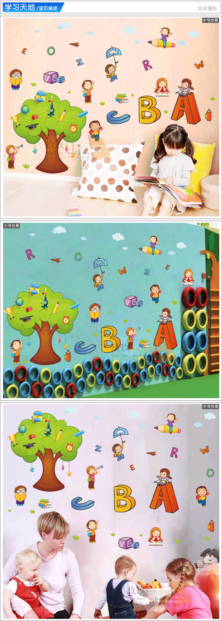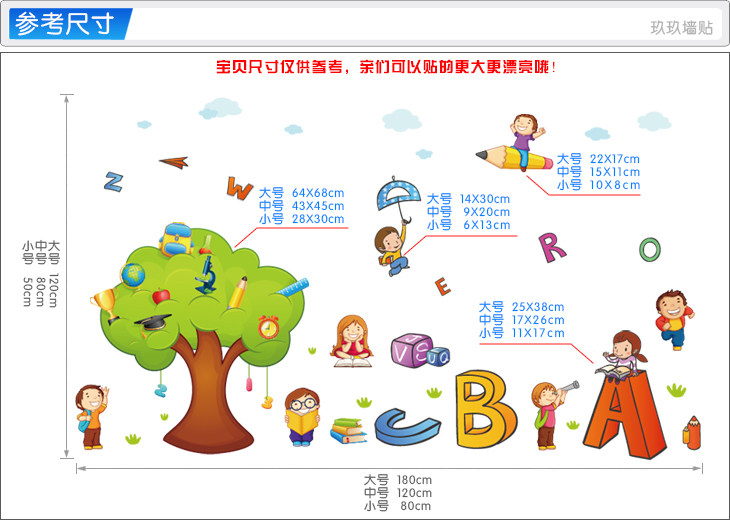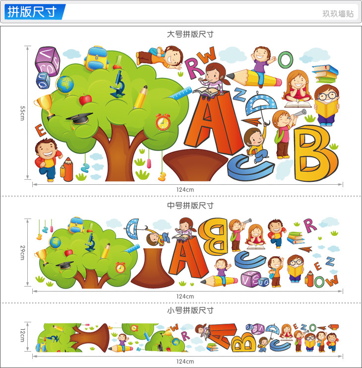 幼儿园英语角少儿开心学英语培训班装饰卡通小人ABC墙贴纸贴画