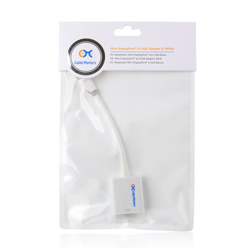 Cable Matters Gold-Plated Mini DisplayPort to VGA adapter is an indispensable companion for your Mac, PC, and tablet equipped with Mini DisplayPort. Connect your laptop or tablet to a monitor or projector for high-definition video streaming (1920x1200 / 1080p) with this portable adapter and a VGA cable (sold separately). Extend your desktop to a second monitor for an expanded workstation, or show presentations on a projector at school or work. Low-profile connector with molded strain-relief design increases durability. Ergonomically designed easy-grip treads make plugging and unplugging a breeze.