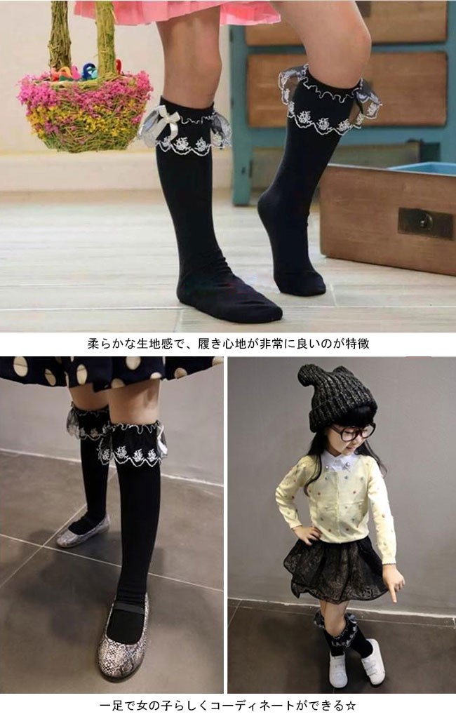 | 商品名 | ニーソックス レース付きハイソックス キッズ 女の子 ガールズ ジュニア 子供 靴下 ひざ下 ストレッチ 美脚スタイル リボン付き プリンセス 姫系 キュート お洒落 お出かけ 小学校 入学式 卒業式 発表会 結婚式 春秋 |
