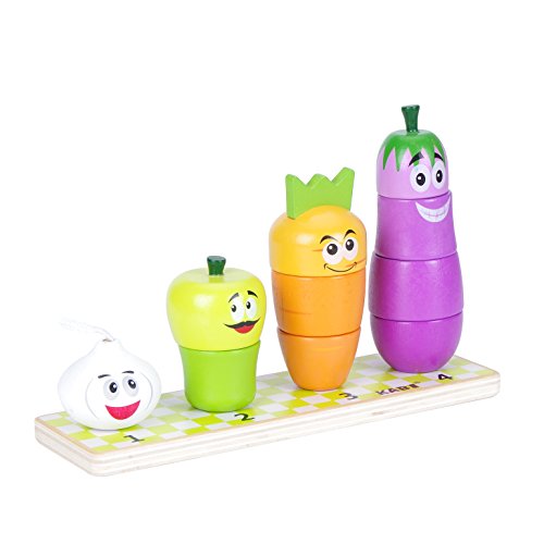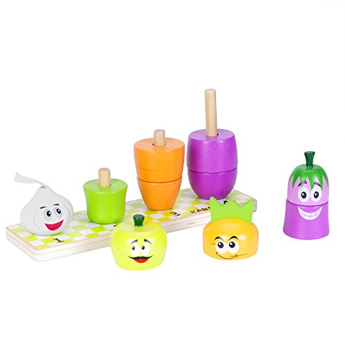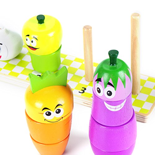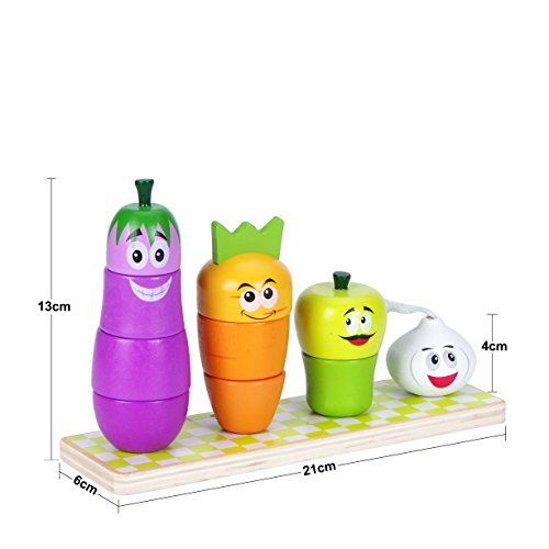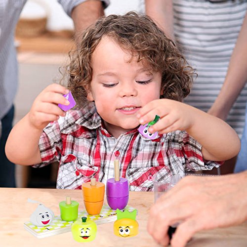 ★Stacking Vegetables Sorter Blocks:Count the pieces, name the shapes and colors,there are 9 pieces block, includes a wooden base with 4 Vegetables .So cute the puzzle and Children can learn it quickly. Good for Image memory training