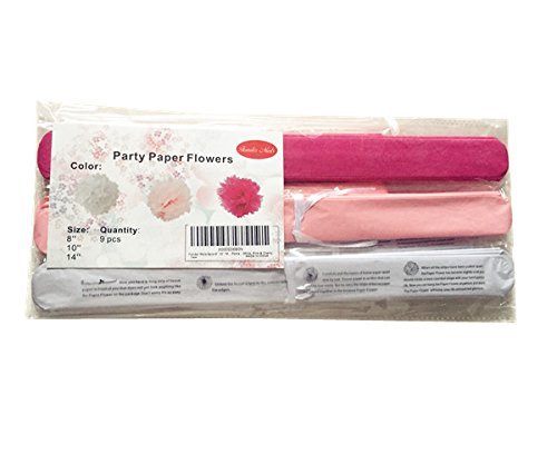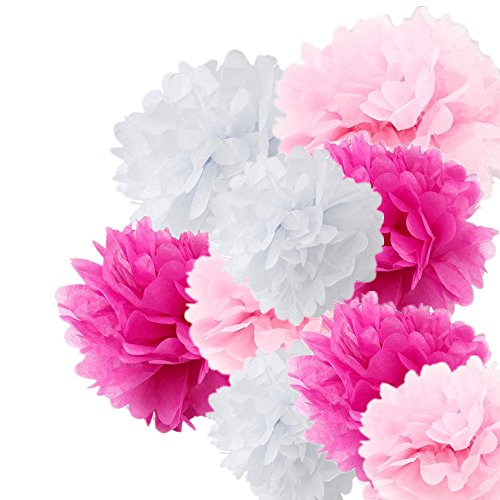 Fonder Mols 9pcs 8'' 10'' 14'' Tissue Paper Pom Poms Flower Wedding Party Baby Girl Room Nursery Decoration, Craft Pom Poms - White, Pink & Cherry